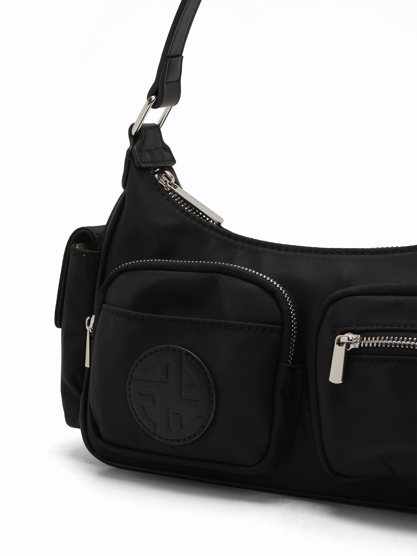 Introducing the Rylan, the ultimate utility shoulder bag designed for the modern individual on the go. Crafted from durable, lightweight black nylon, this bag seamlessly blends street-style aesthetics with practical functionality, making it your perfect daily companion.