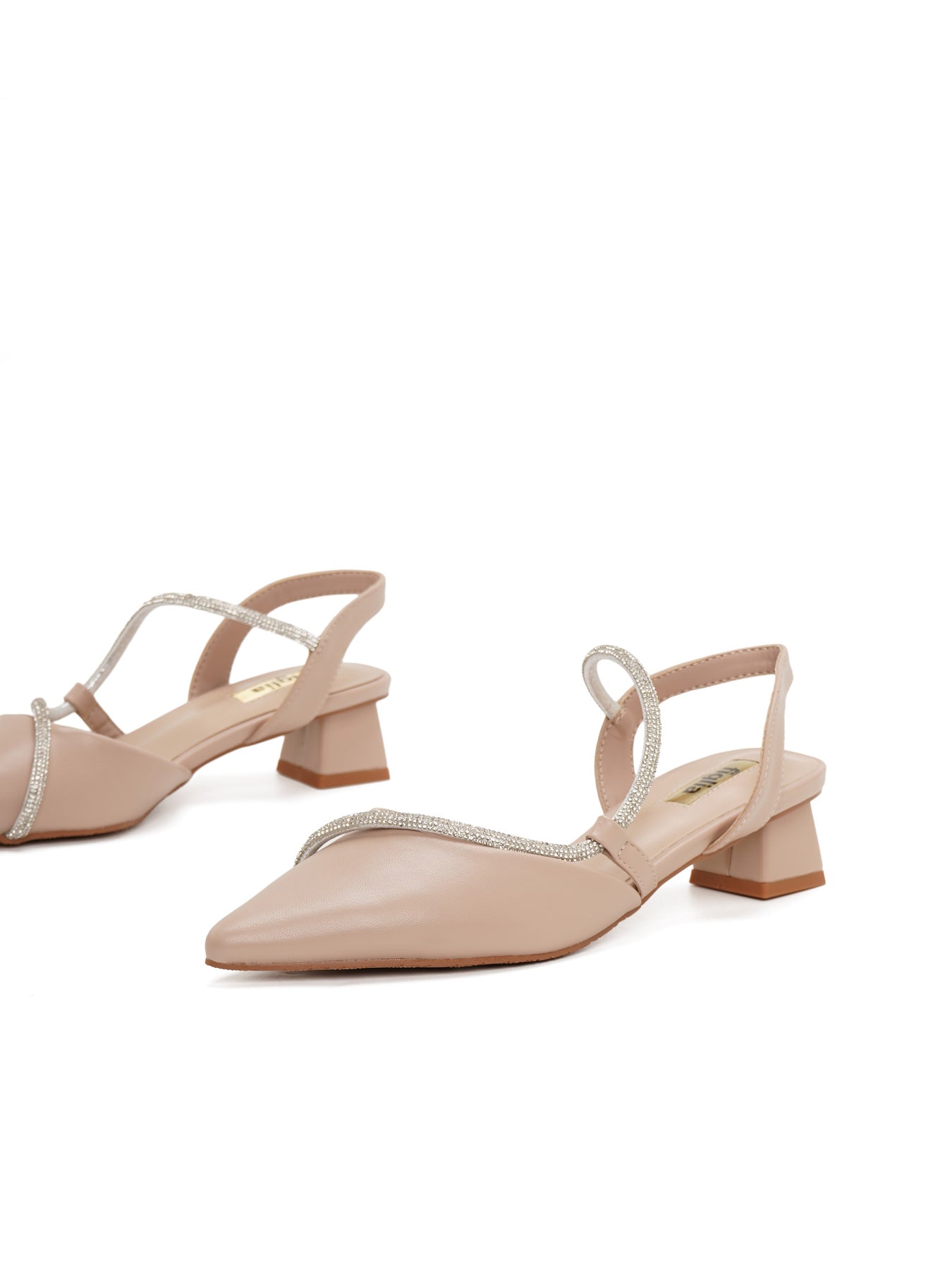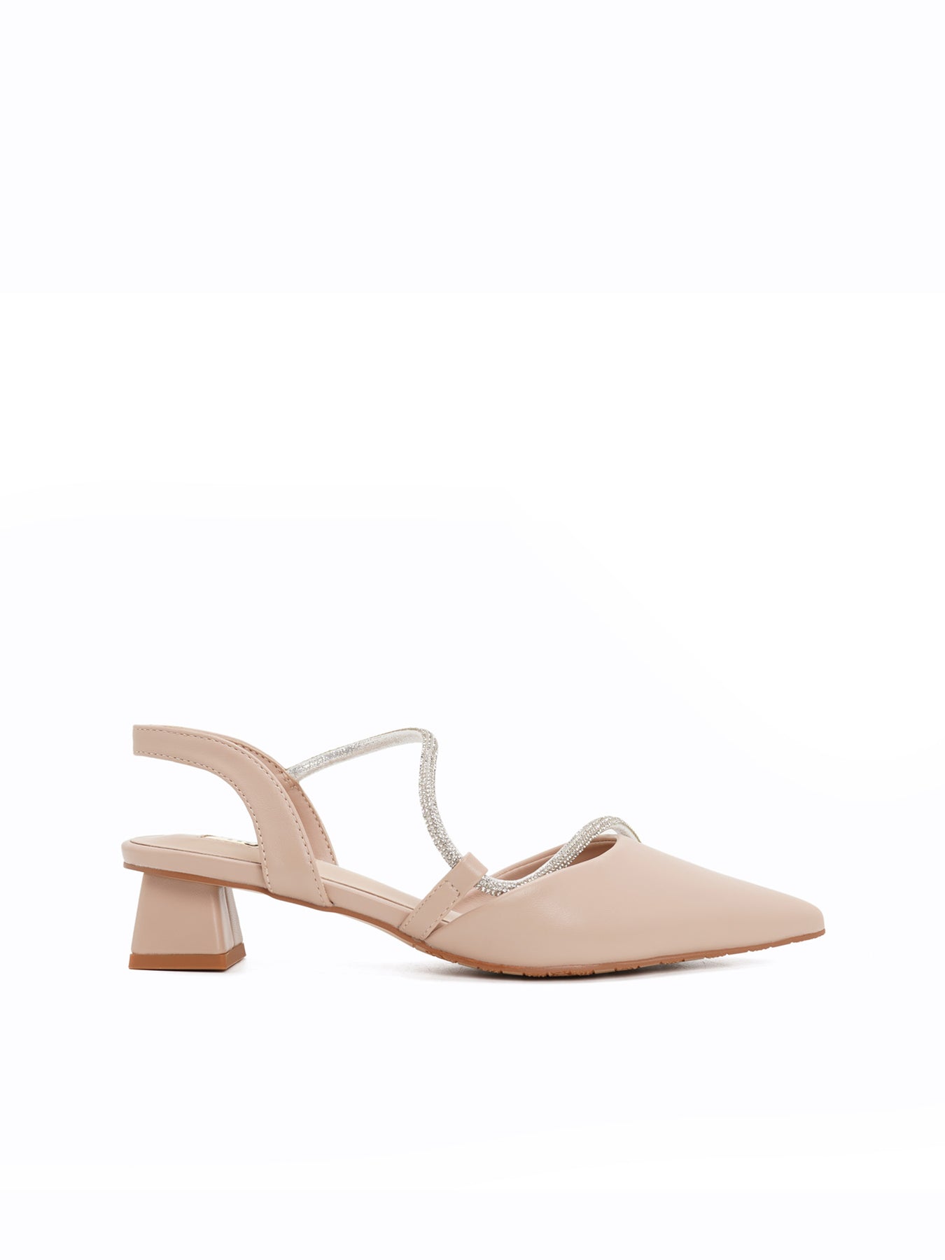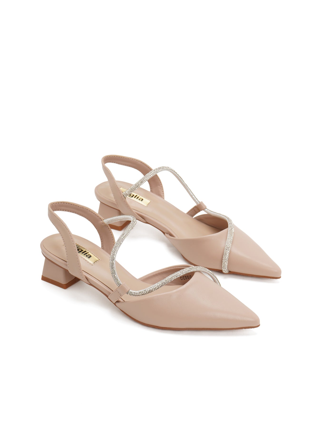 The Debbie Slingback Pumps offer an ethereal pointed-toe silhouette featuring shimmering crystal-embossed straps that elegantly catch the light with every movement.