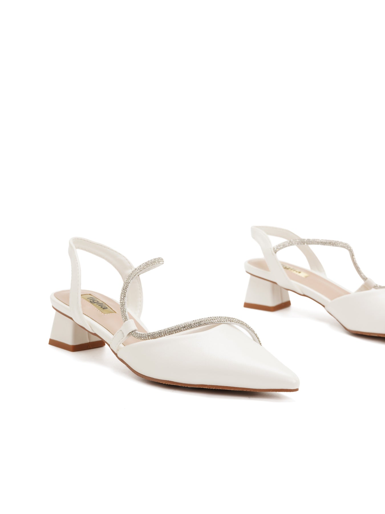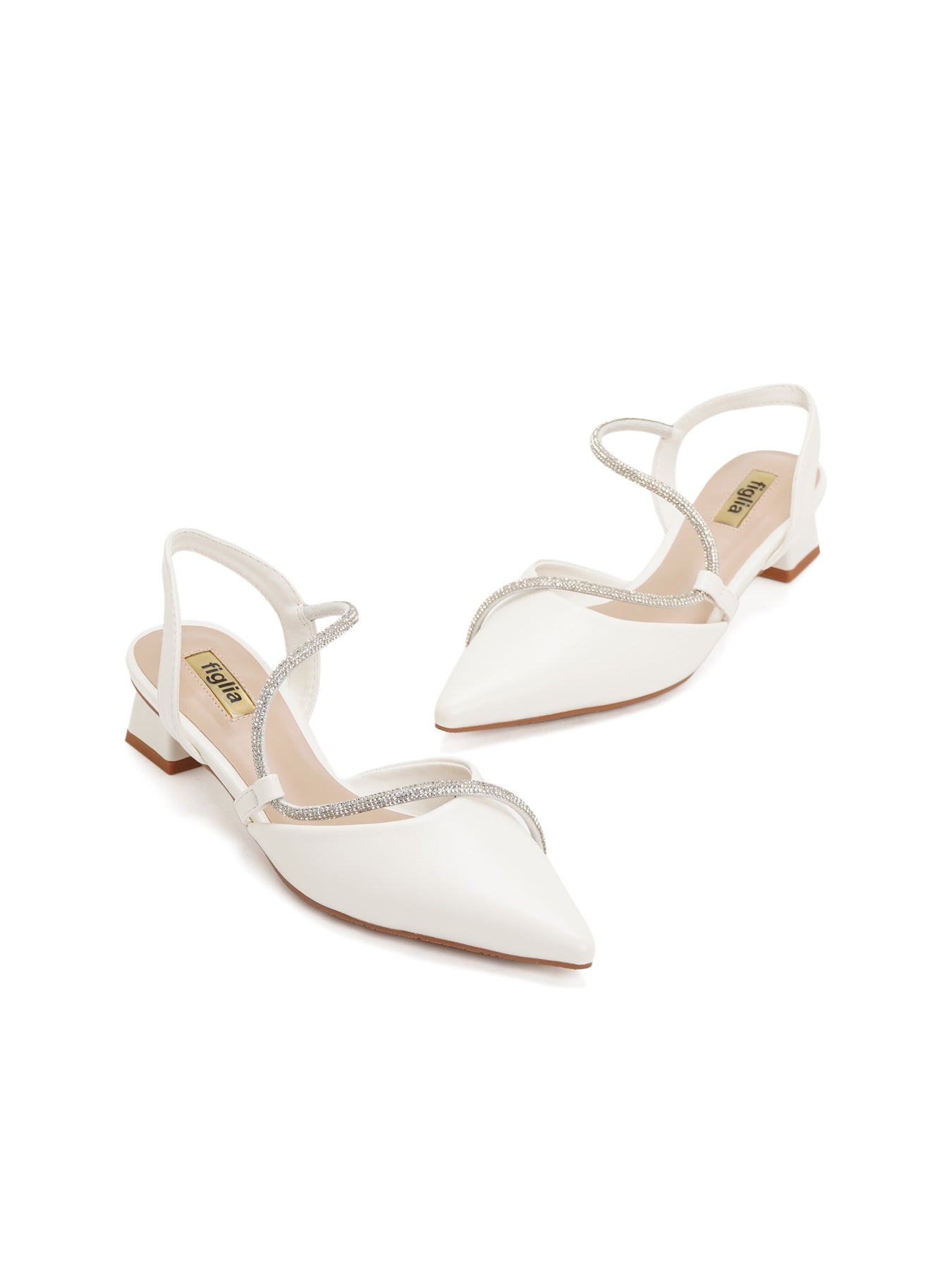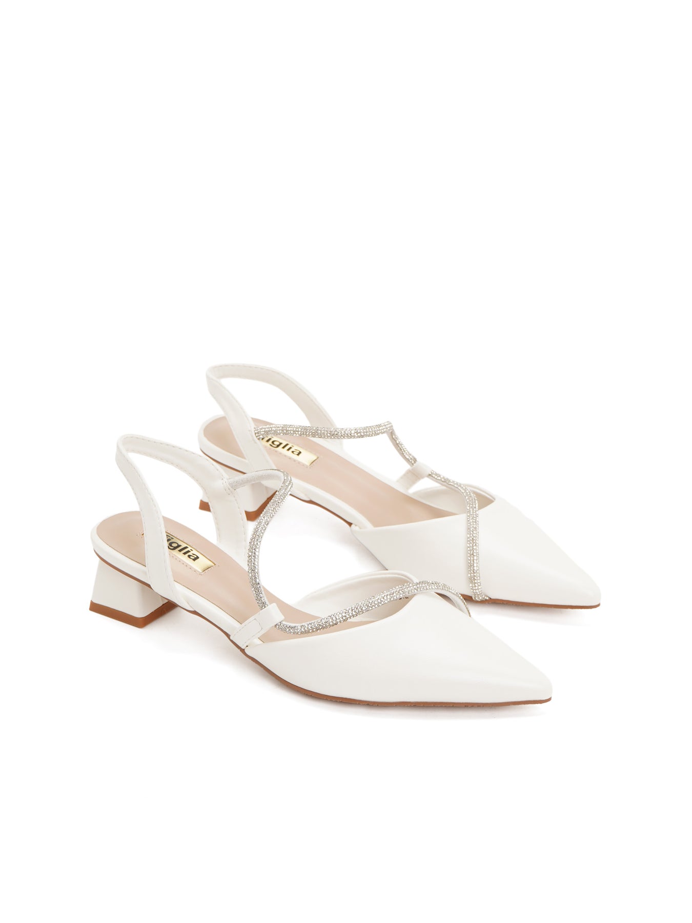 The Debbie Slingback Pumps offer an ethereal pointed-toe silhouette featuring shimmering crystal-embossed straps that elegantly catch the light with every movement.