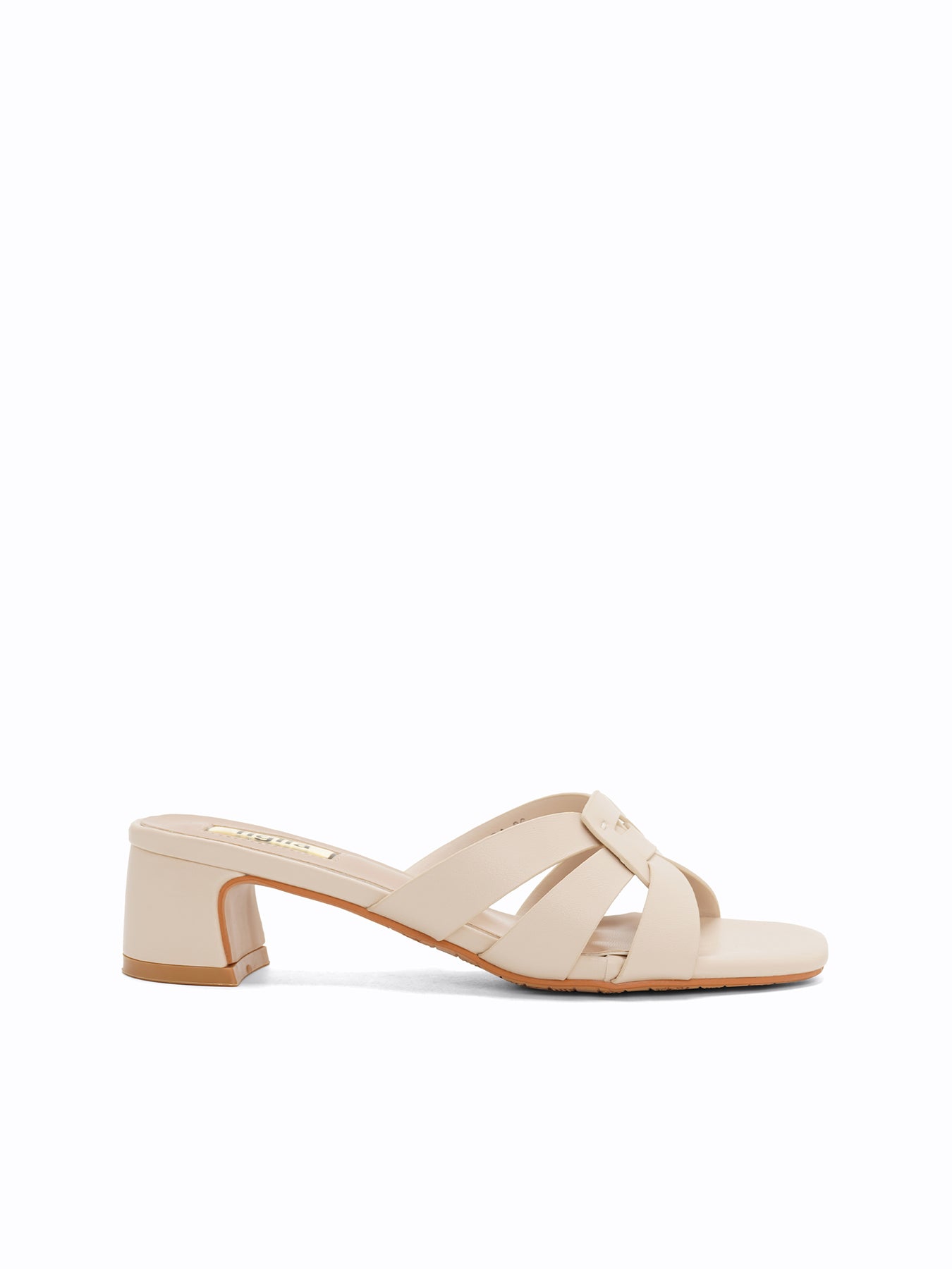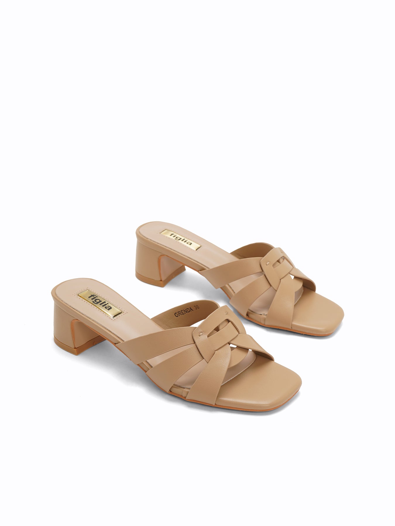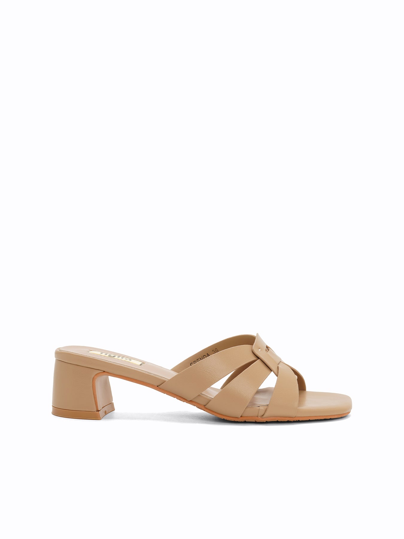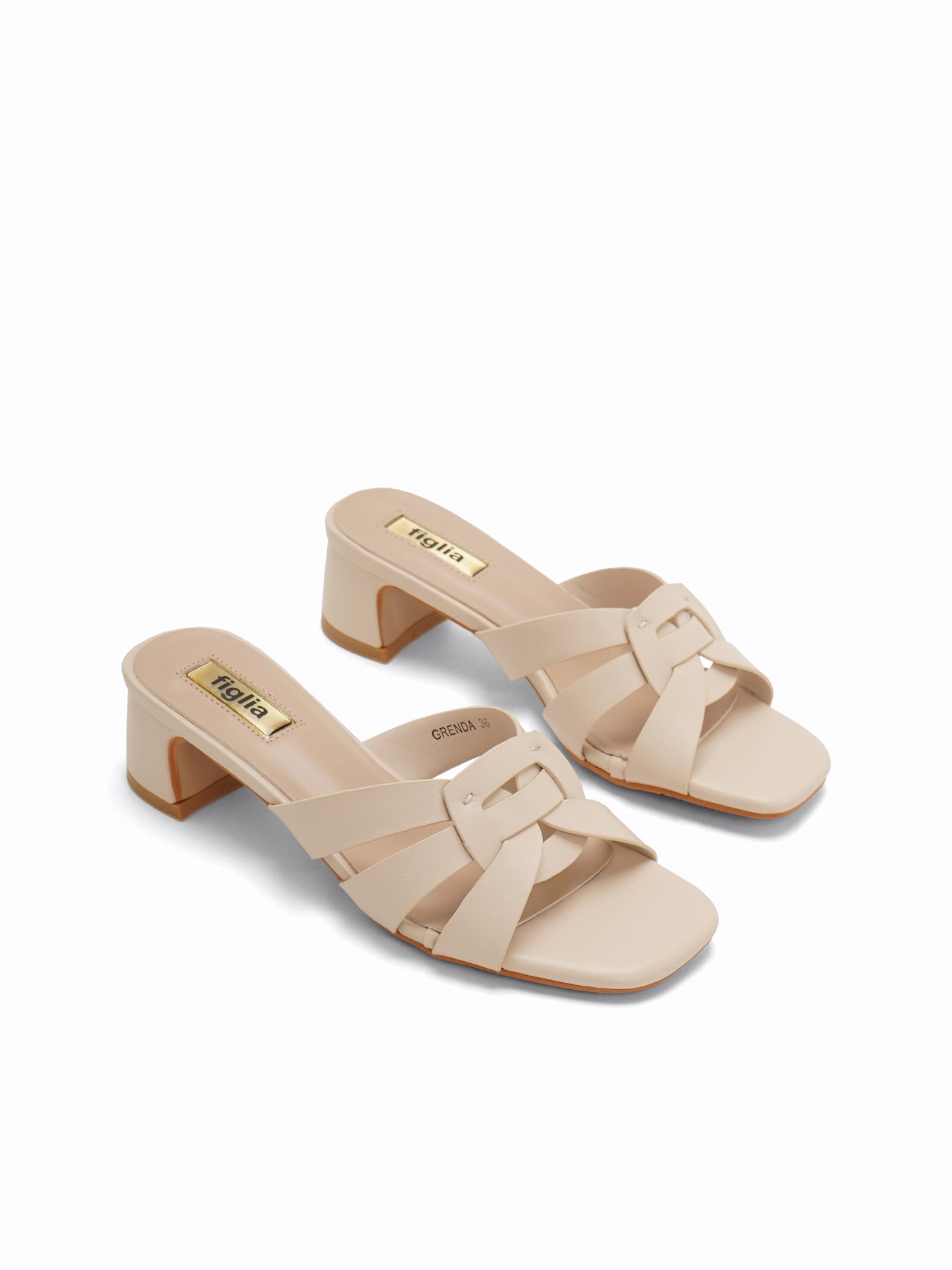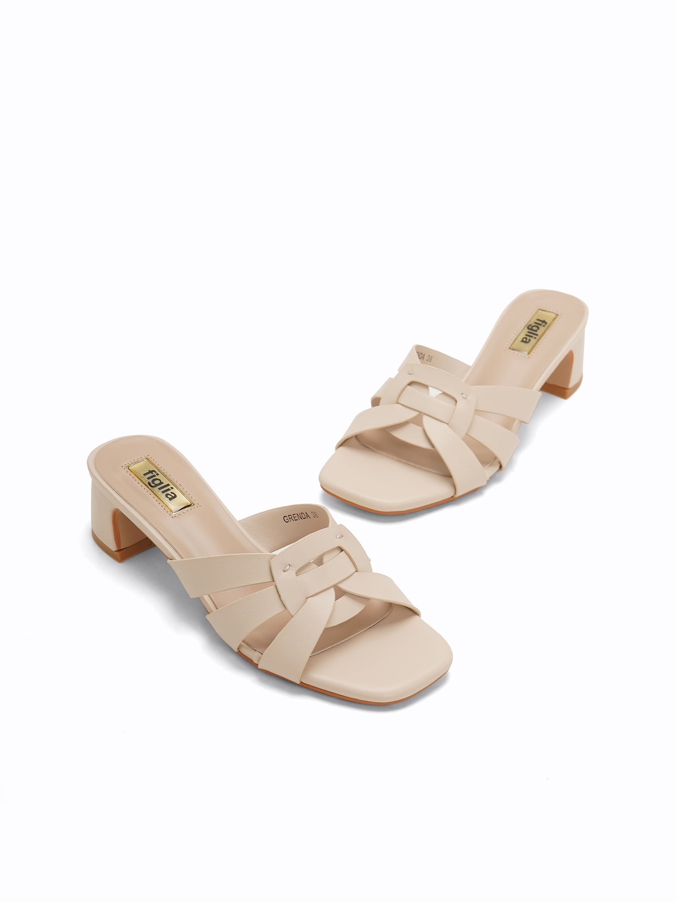 The Grenda Heel Slides feature an elegant square-toe silhouette with a classic interwoven strap design and a sturdy, mid-height block heel for effortless day-to-night style.