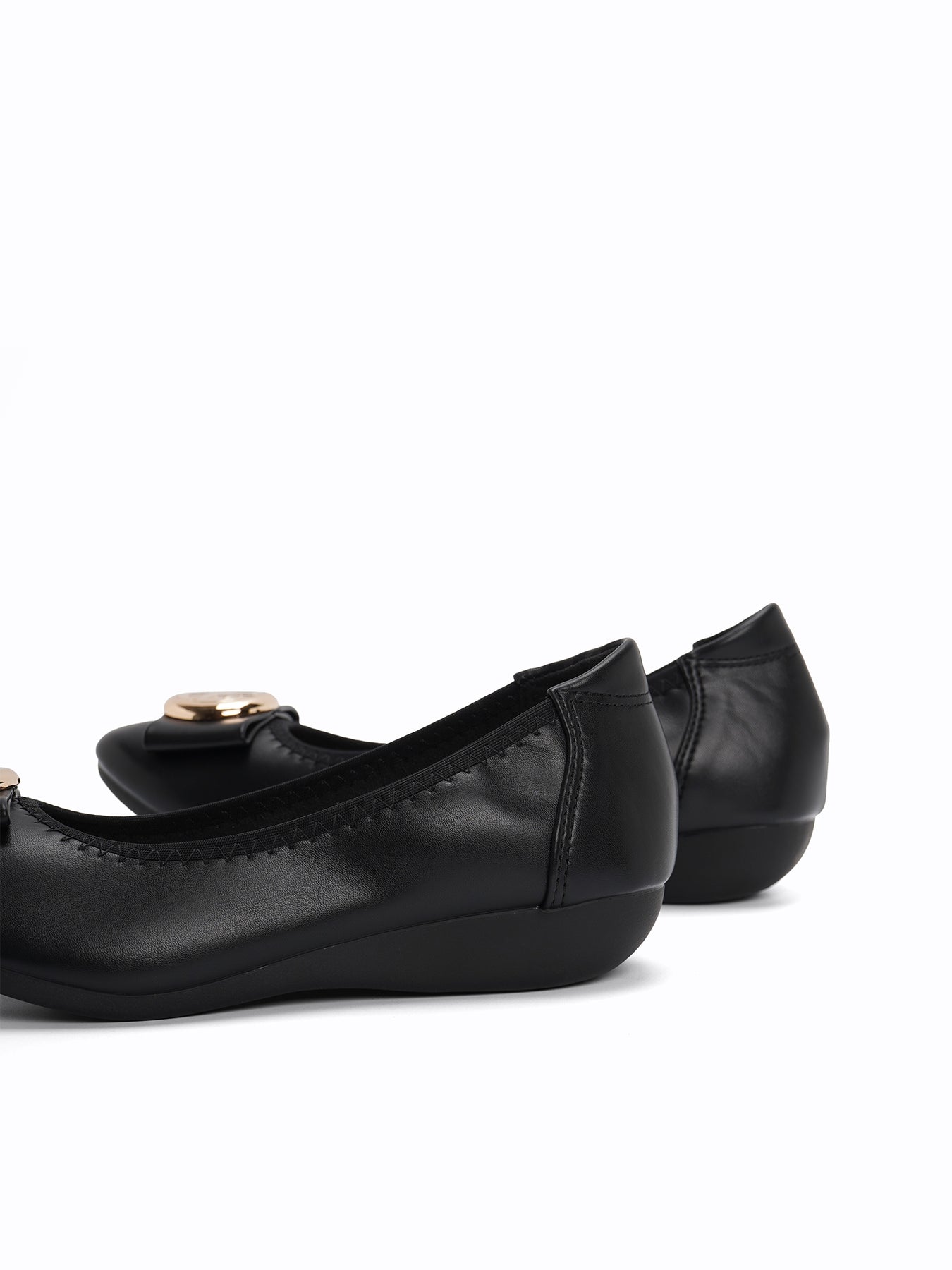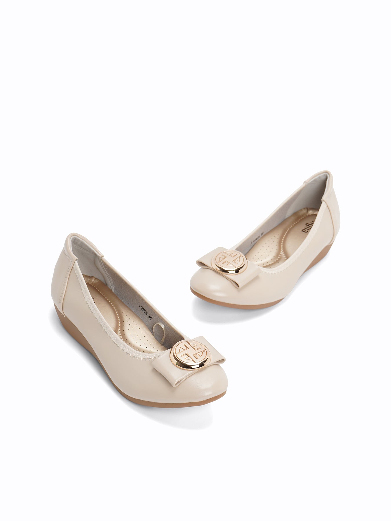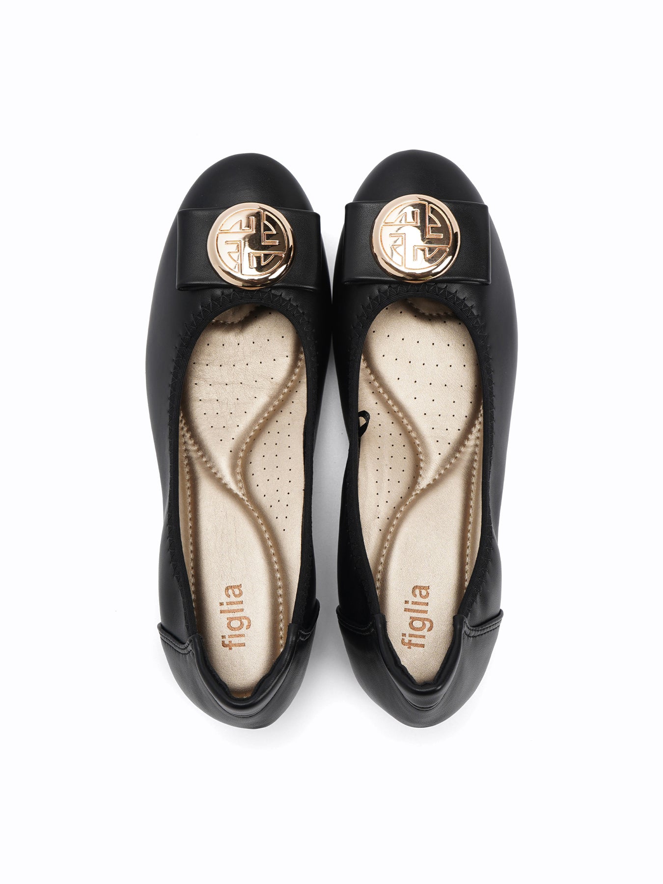 Step into effortless elegance with the Lorin Flat Ballerinas, featuring a sleek leather-look finish and a sophisticated gold-tone medallion for the perfect blend of comfort and style.