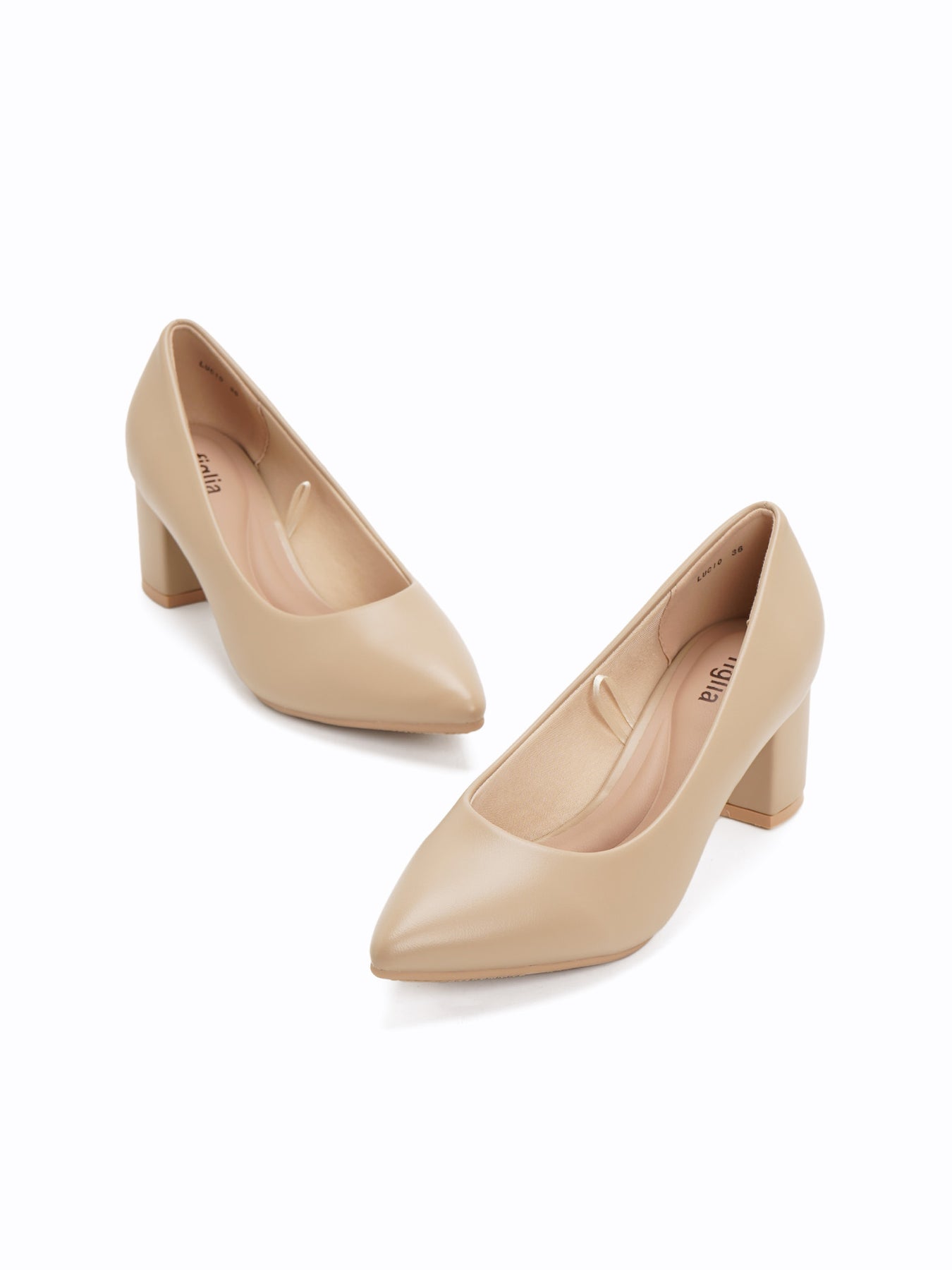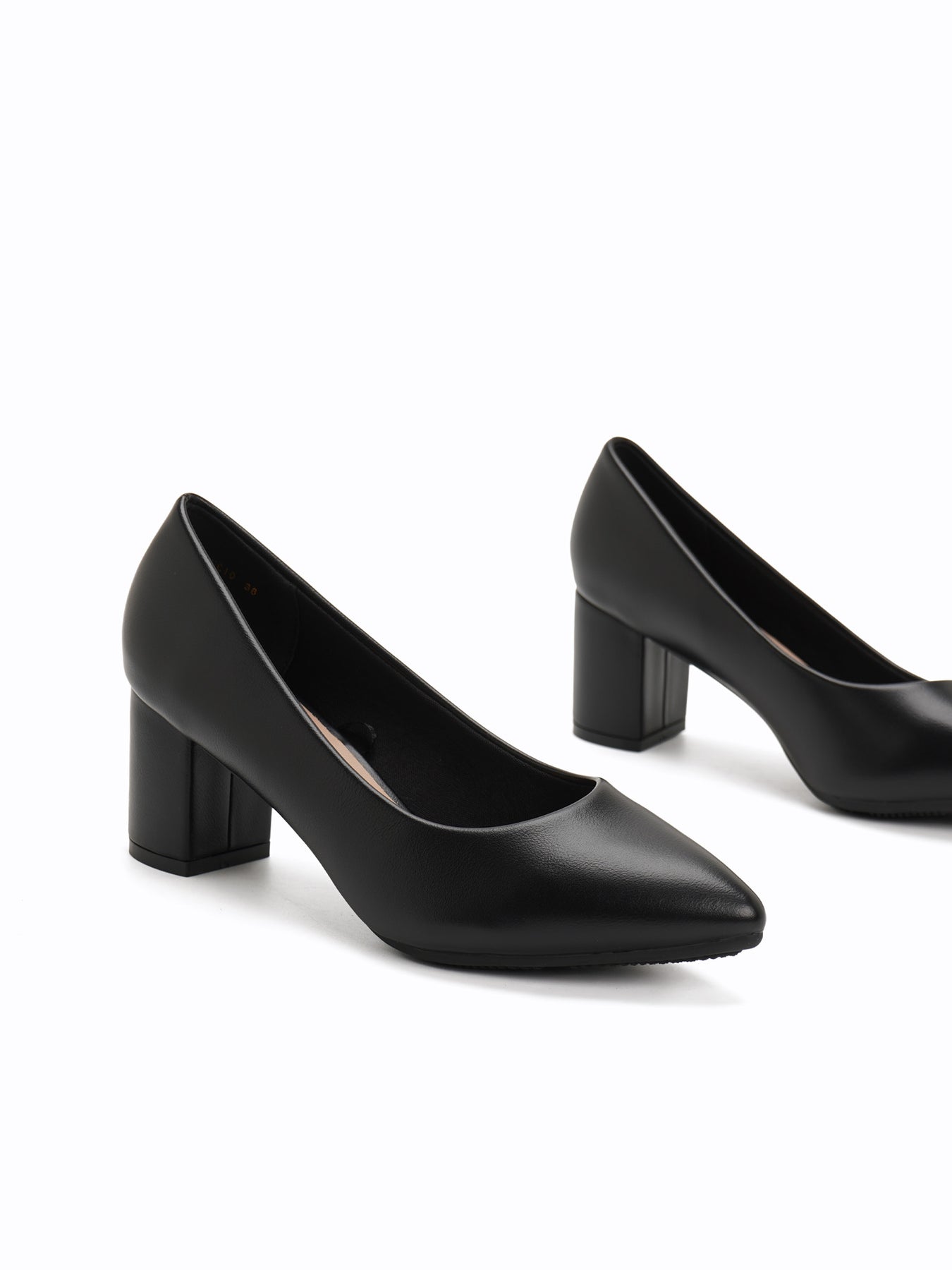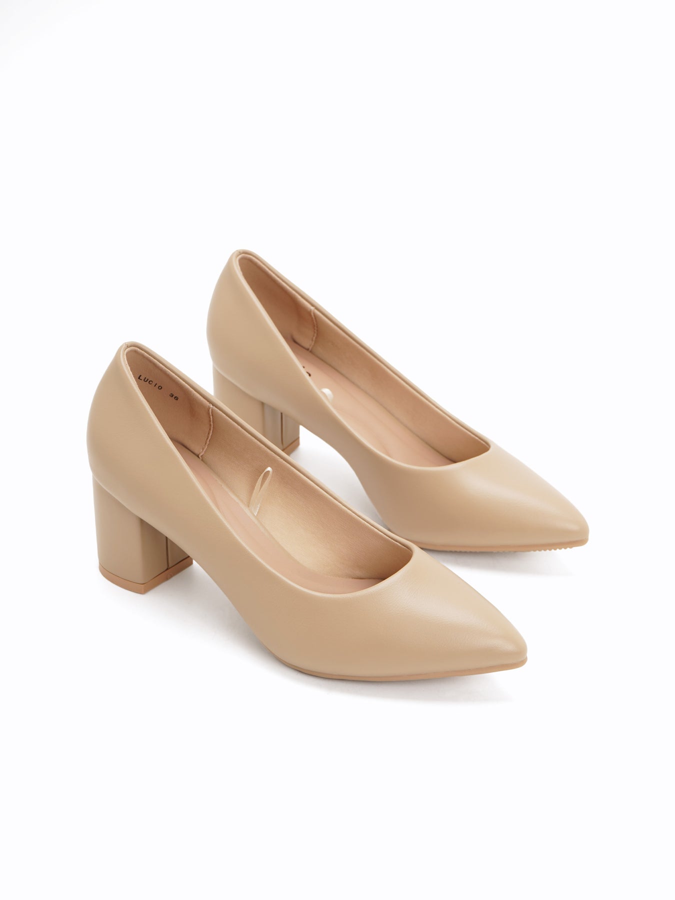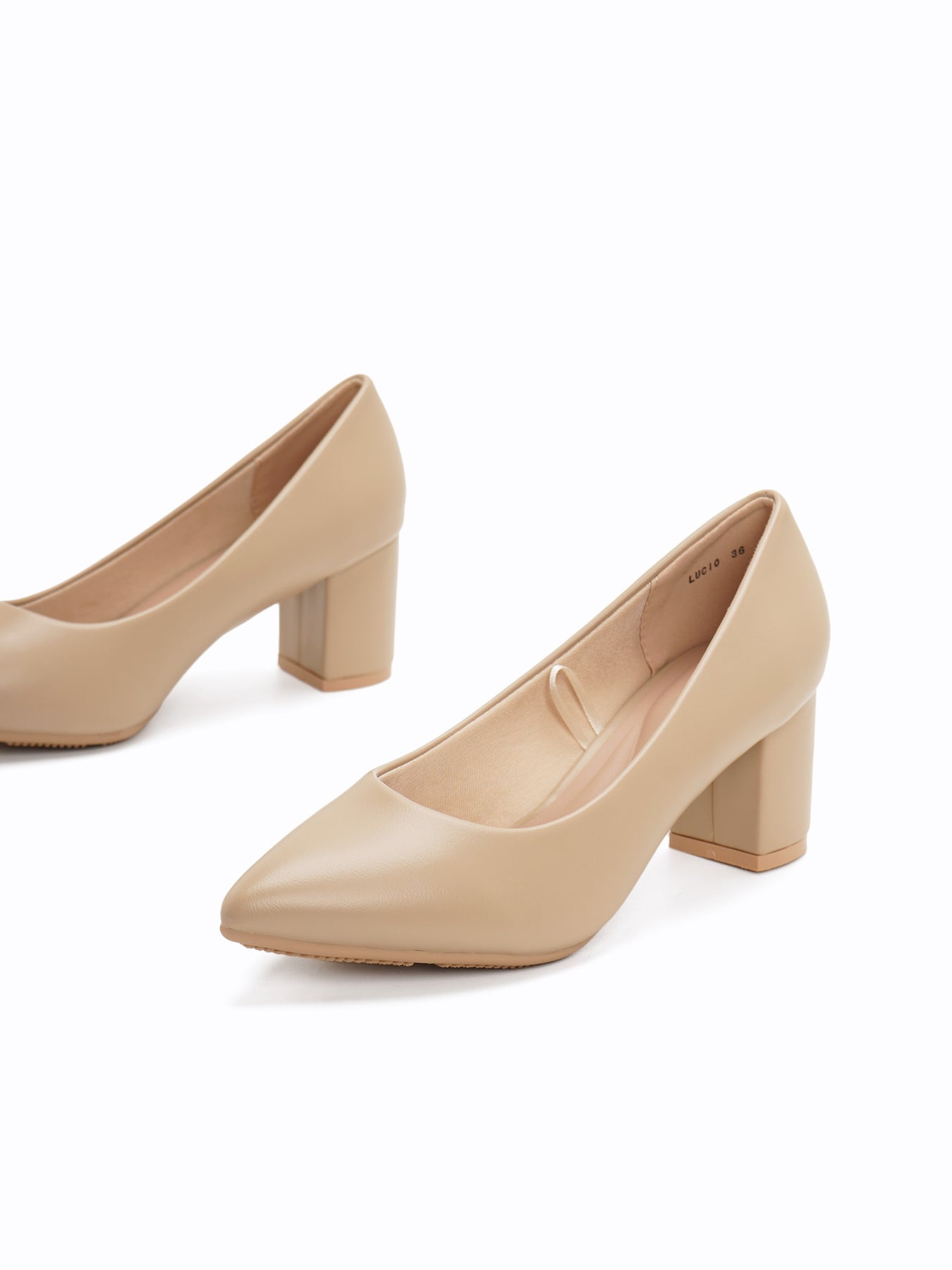The Lucio Heel Pumps feature a sophisticated pointed-toe silhouette and a sturdy, mid-height block heel, offering a timeless and versatile design suitable for any professional or formal occasion.