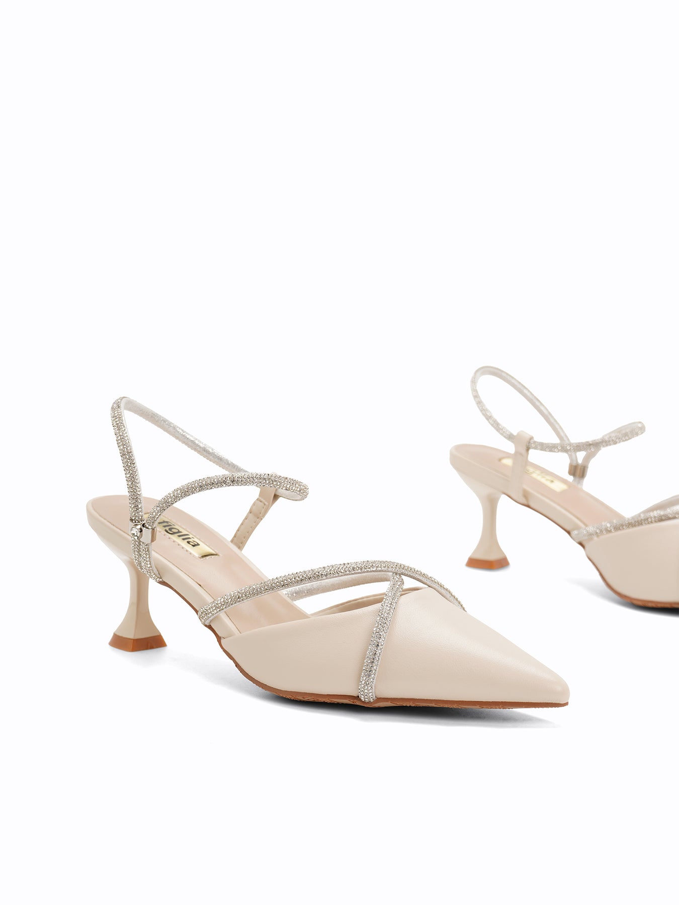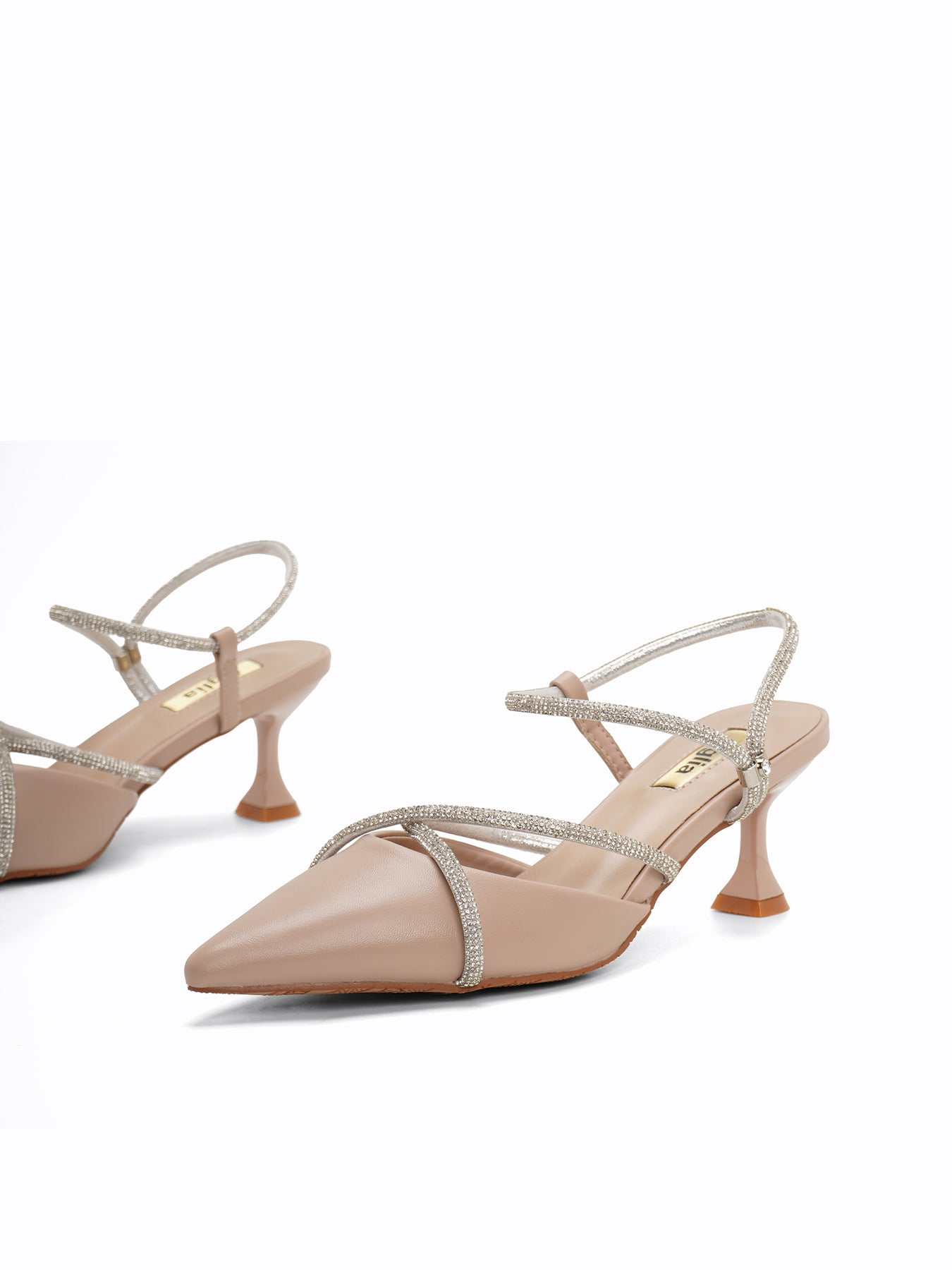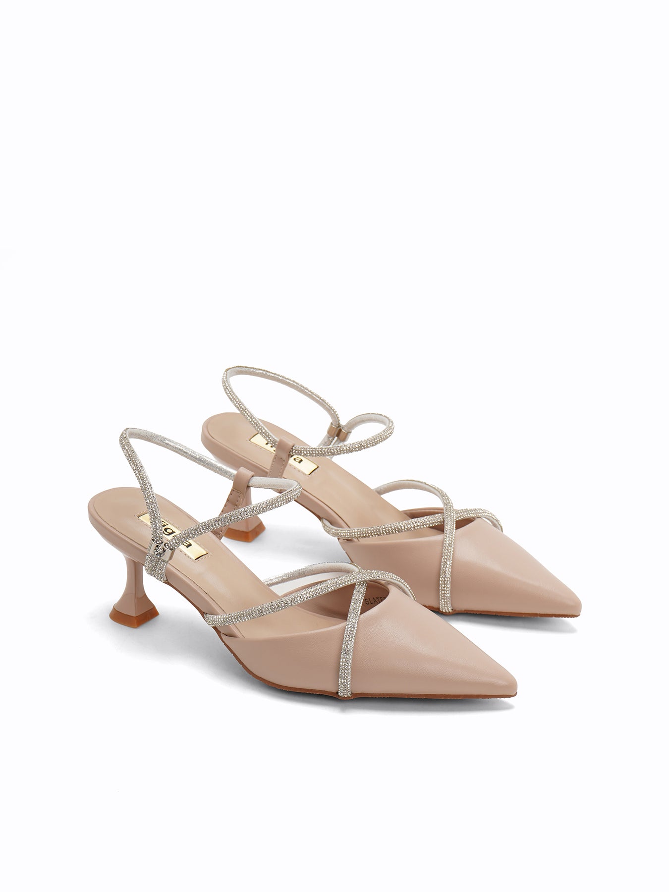 Radiate effortless glamour with the Slater Slingback Pumps, featuring a sleek pointed toe and shimmering crystal-encrusted straps that wrap your feet in pure elegance.