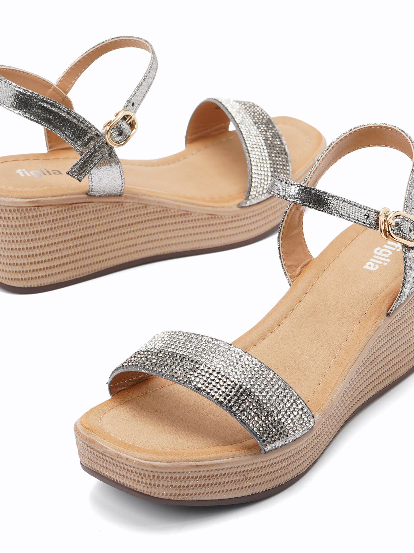 Step out in style with Nina Wedge Sandals. With a glitter strap and easy to walk wedge sole, these sandals are sure to add a touch of glamor to your look.