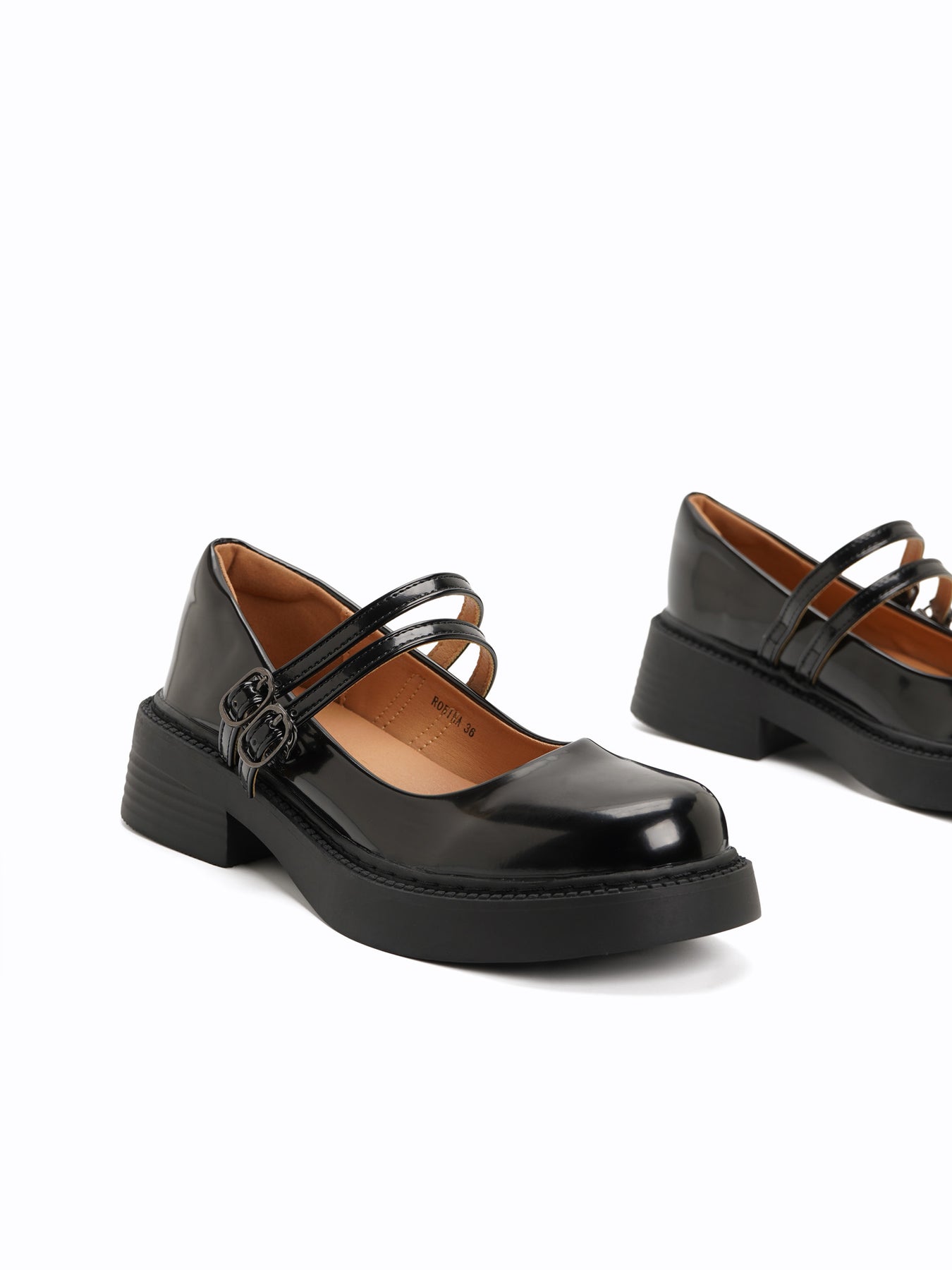 Step into the school year confidently in these stylish black Mary Jane shoes. Customize your fit with a versatile double strap—wear it classic or go crisscrossed. Sleek, durable, and made to move with you.
