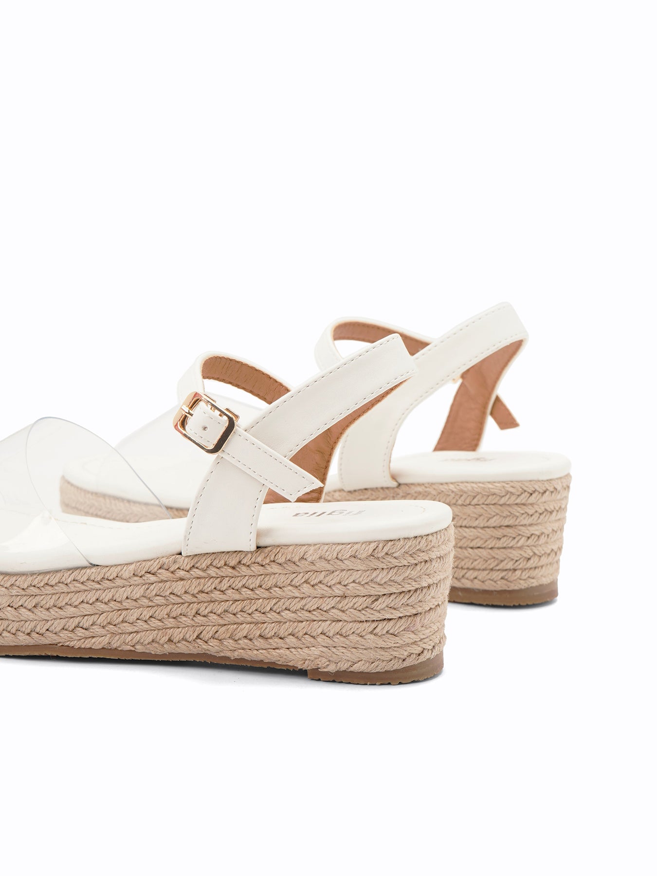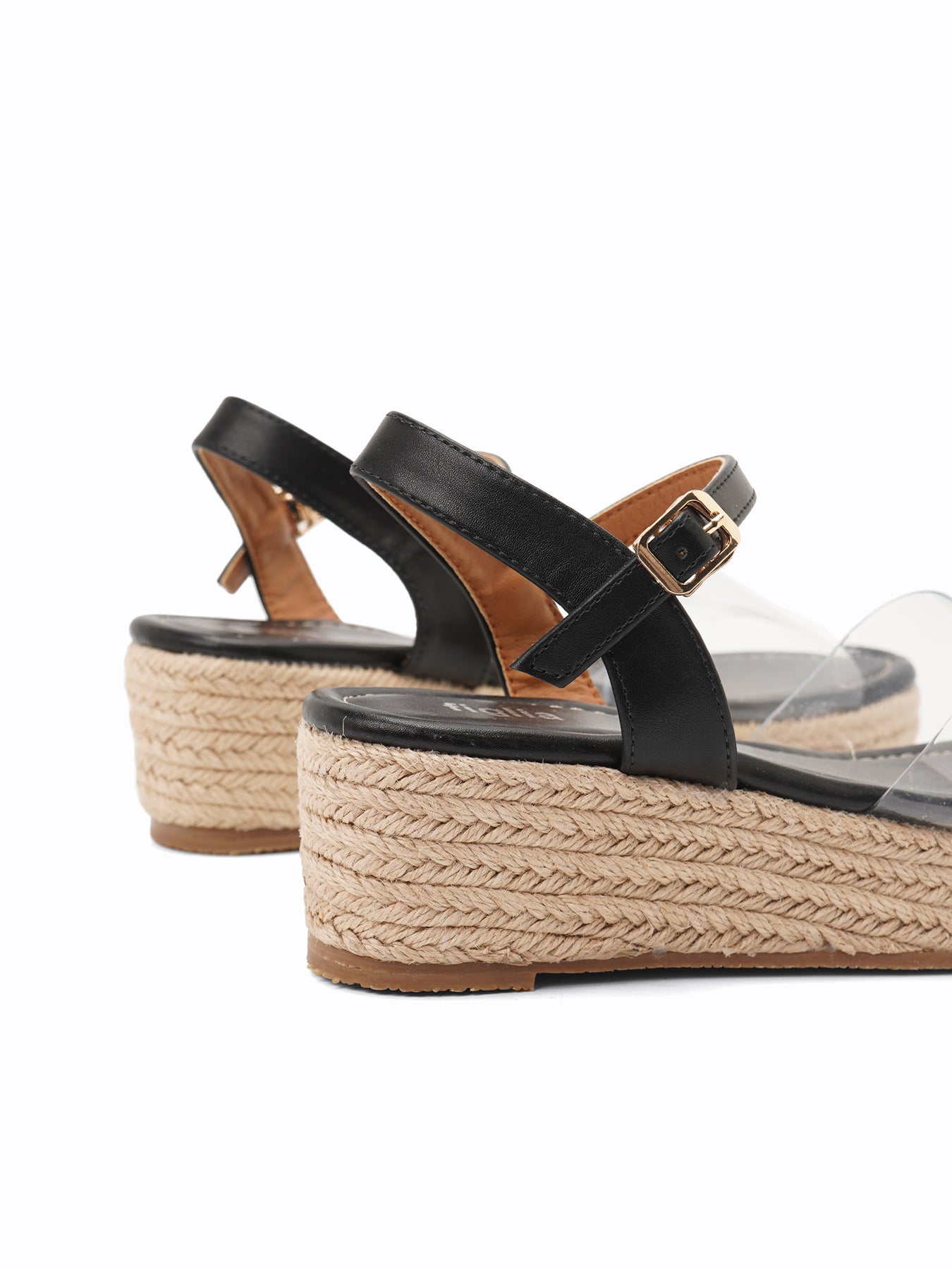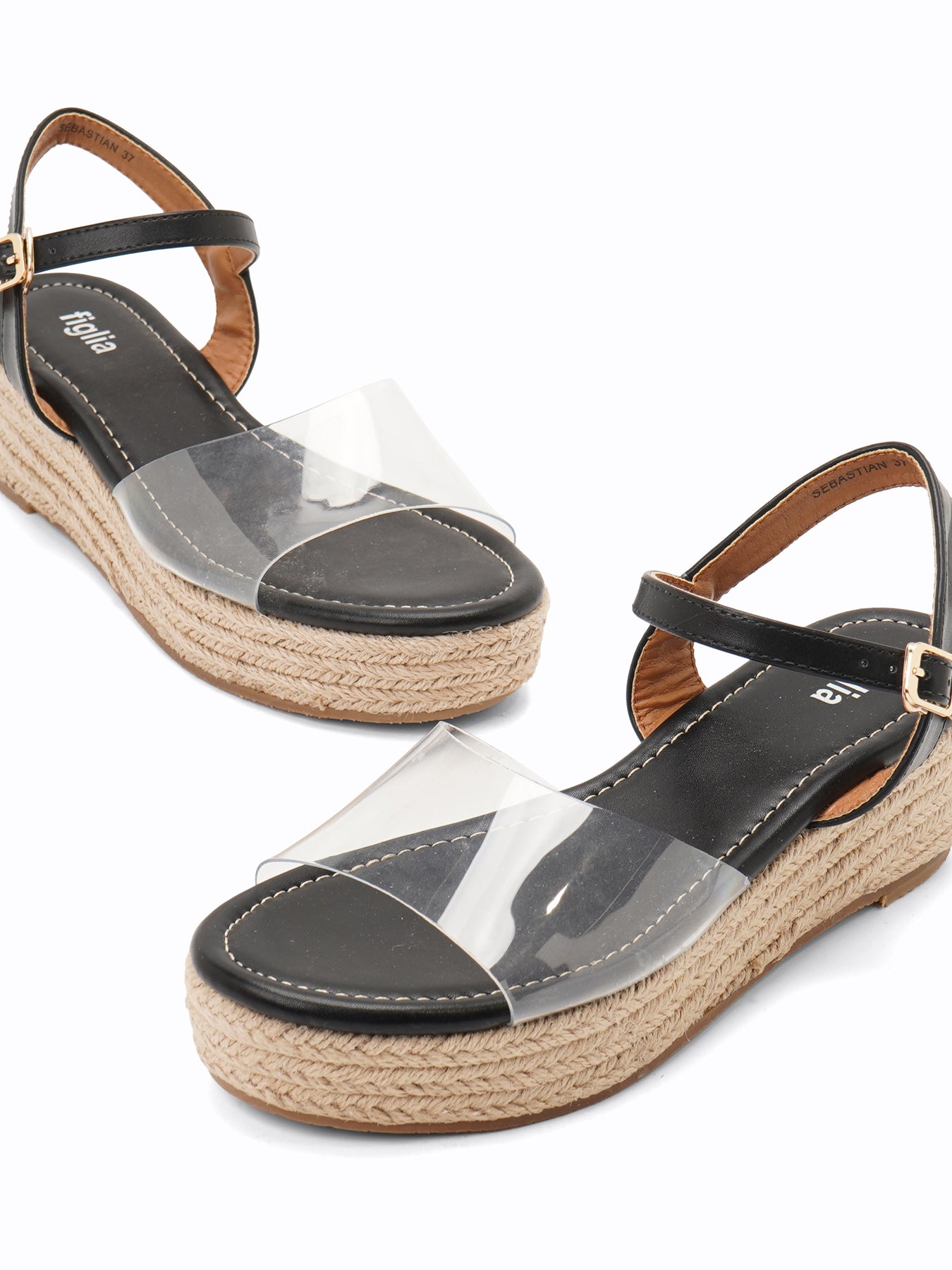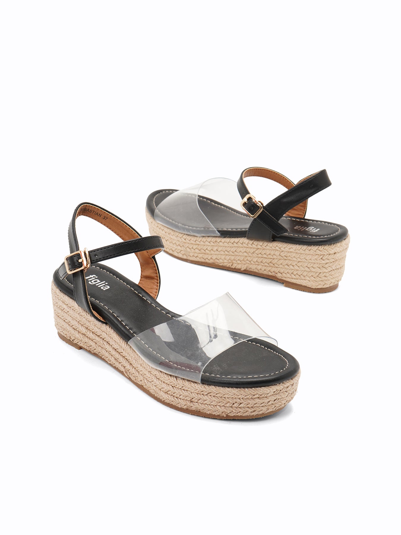 Step into summer with the Sebastian Wedge Sandals. These espadrilles wedges feature a clear strap for a modern and sleek look while also providing comfort. Perfect for adding a fun and playful touch to any outfit.