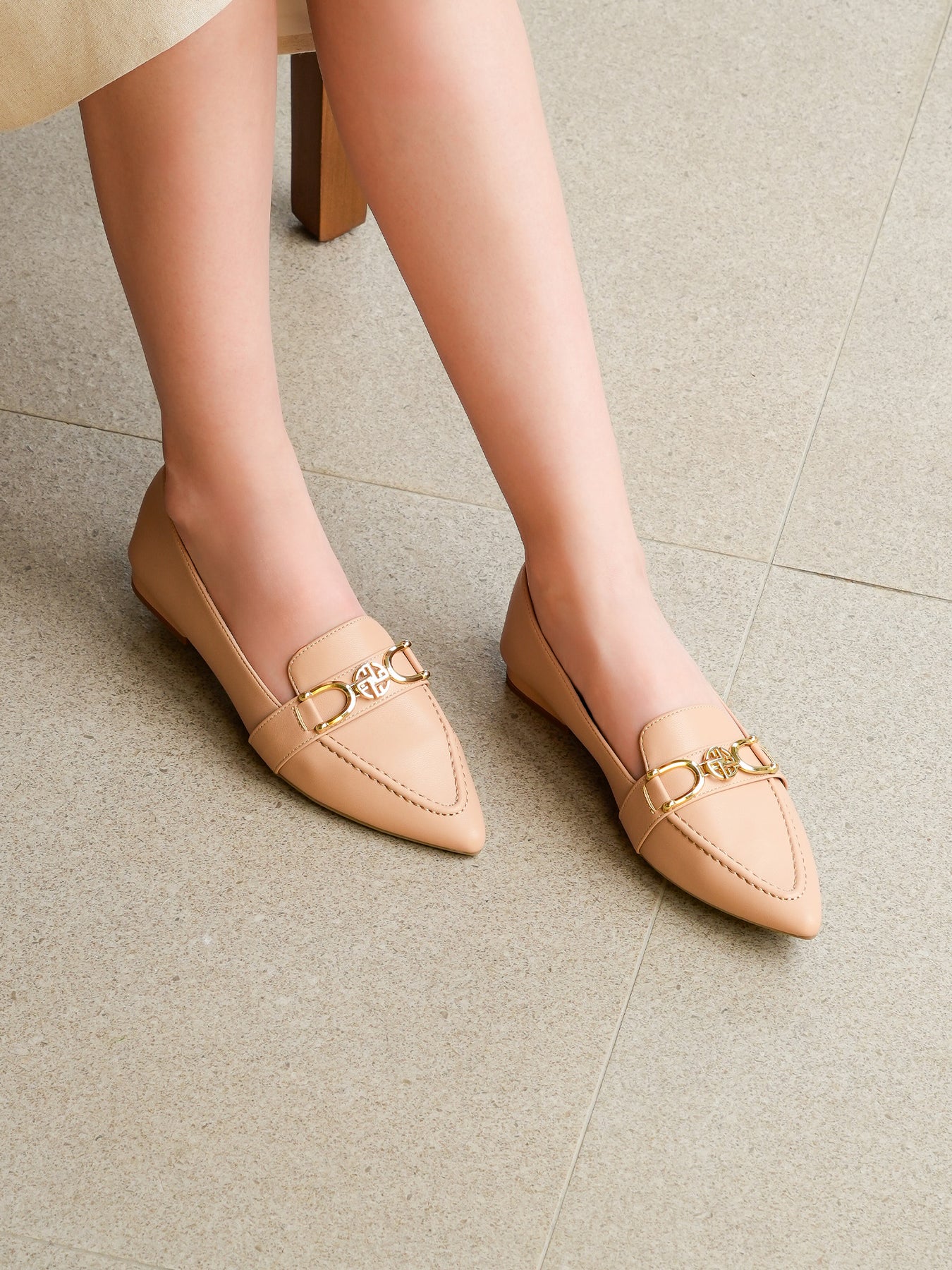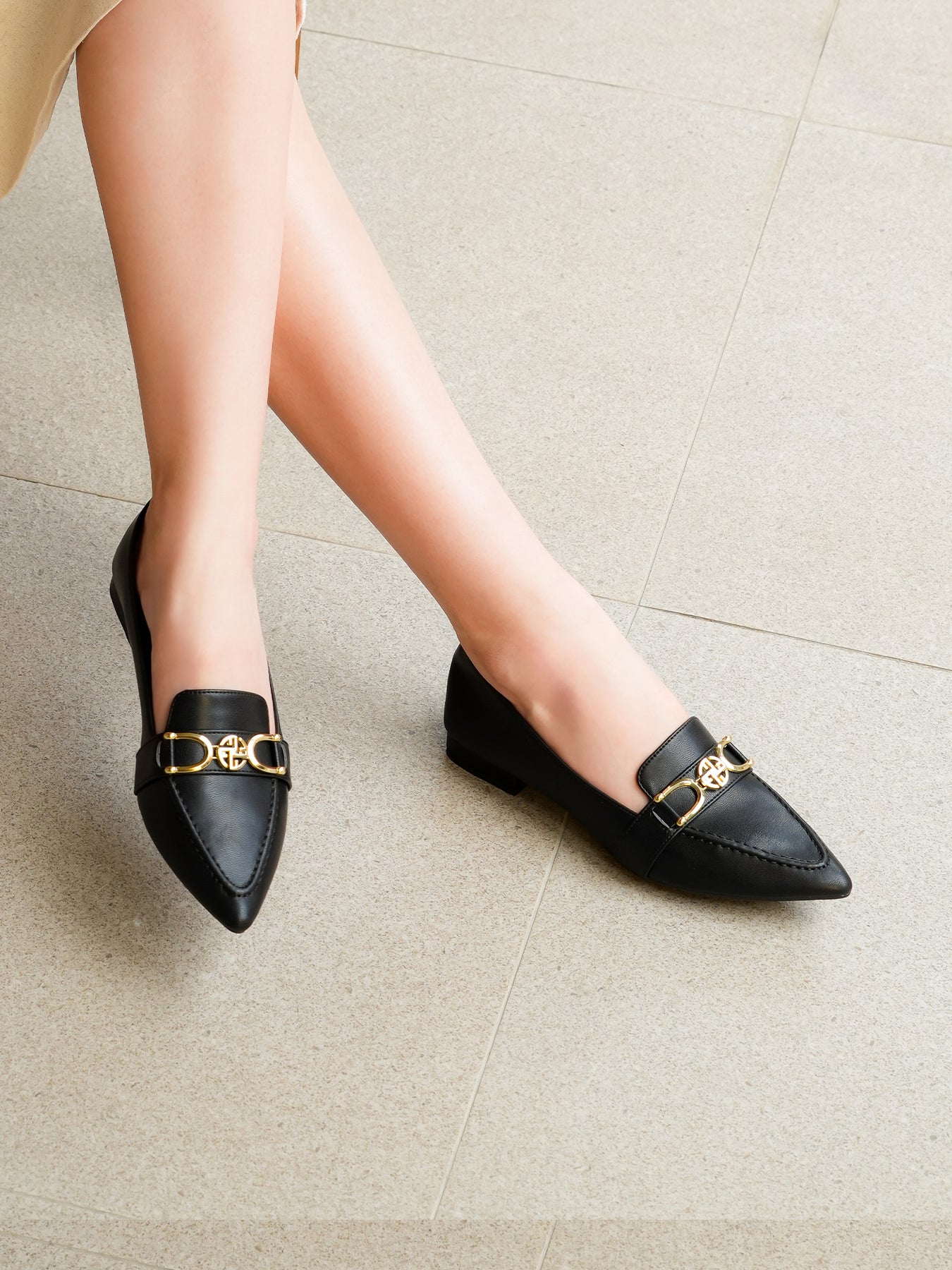 The Vito Flat Loafers offer a graceful pointed-toe silhouette and a subtle low heel, exuding an air of quiet confidence and timeless charm. Finished with gold-toned hardware, these loafers bring a touch of luxury to the modern woman's everyday wardrobe.