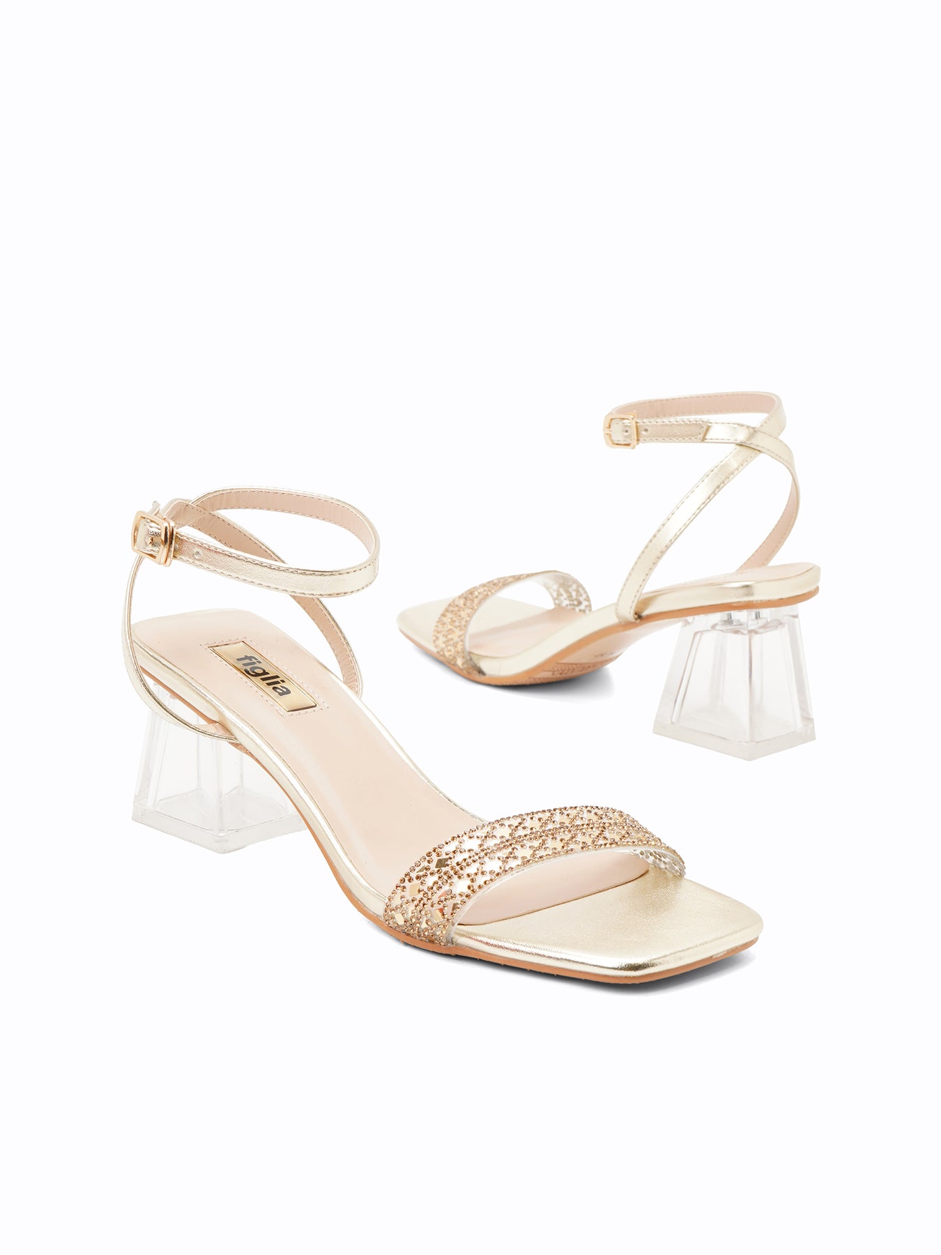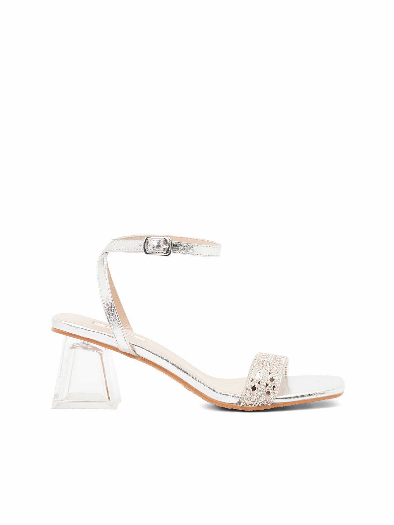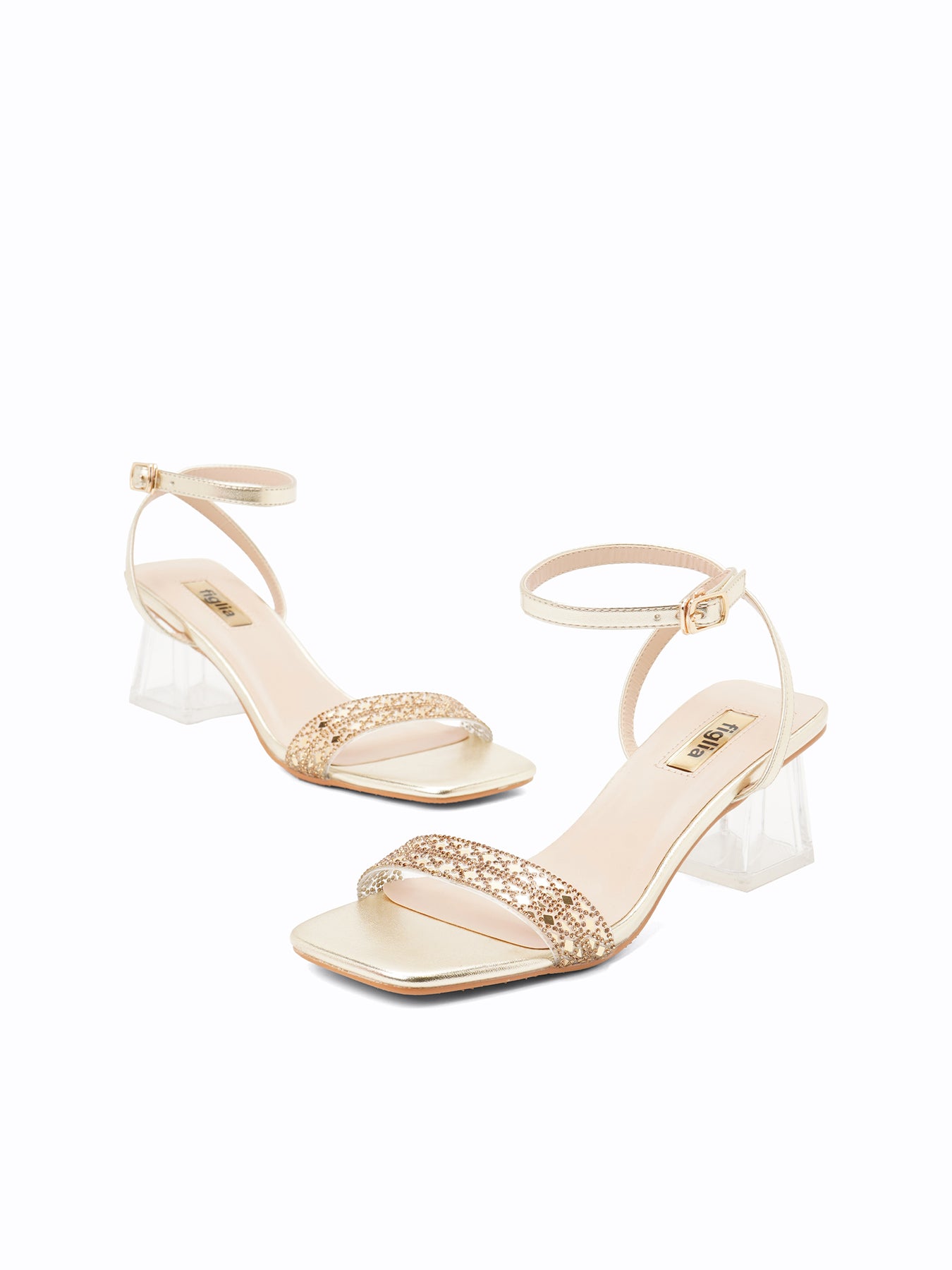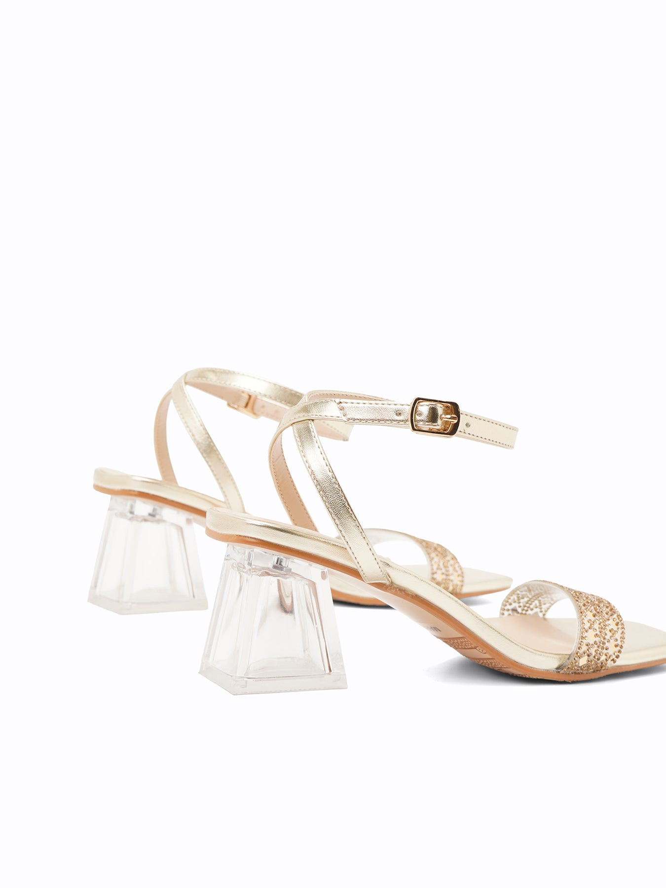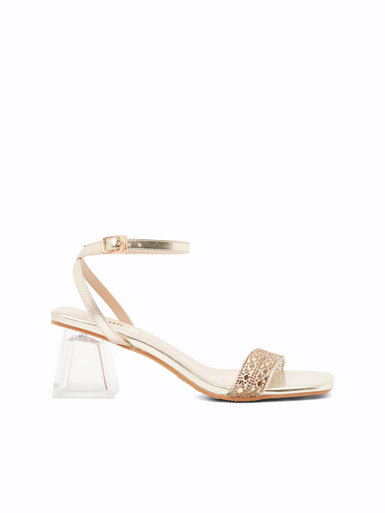 Discover effortless style with the Maren Heel Sandals. The metallic finish adds a touch of glamour to any outfit, while the transparent block heel adds a modern twist. Perfect for everyday wear, these sandals add a fancy touch to your look. Elevate your style game with the Maren Heel Sandals.