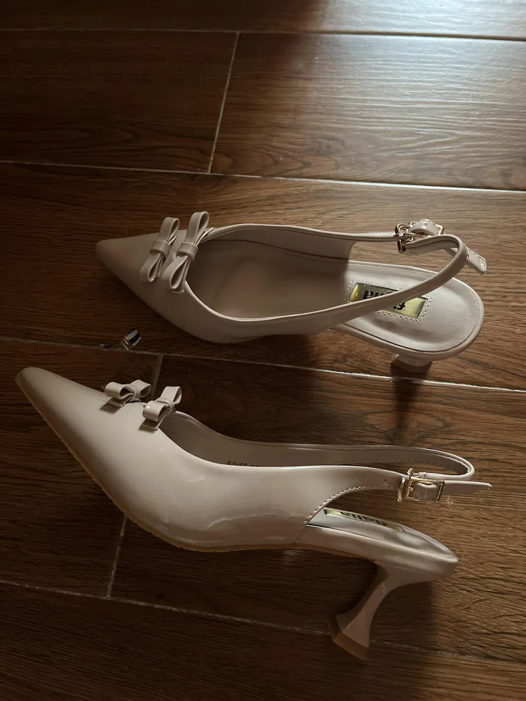 Step into sleek sophistication with the Royce Slingback Pumps. Featuring a pointed toe and chic double bow detail, these modern heels add a playful yet elegant touch to your office look.
