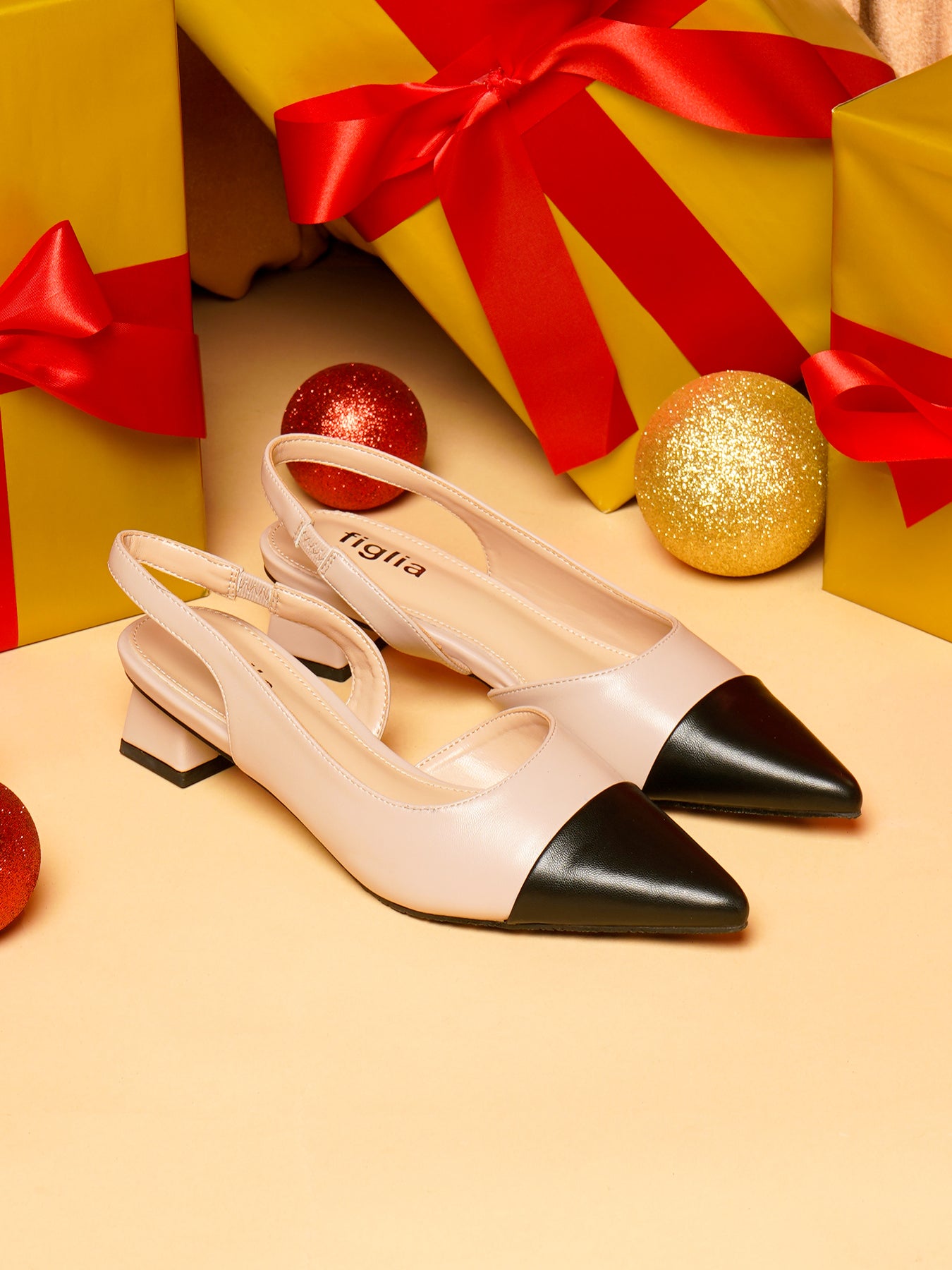 Step into sophistication and comfort with these Snow Slingback Heels. The classic low block heel makes them feel stable and look chic, while the slingback design keeps them secure and easy to wear. Feel great and look even better!